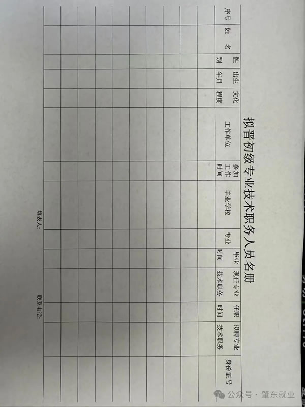 4、填寫《擬晉初級(jí)專業(yè)技術(shù)職務(wù)人員名冊》一份,內(nèi)容填全。