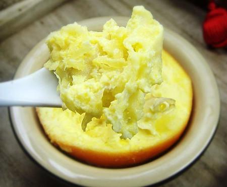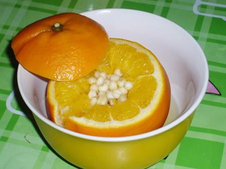 7)燕窩放進(jìn)橙子里,加點(diǎn)點(diǎn)水。