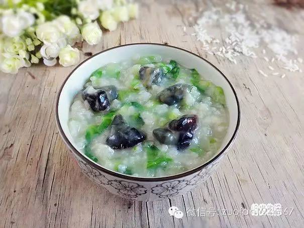 主料:大米 (50克)、皮蛋 (一個)、生菜 (100克)