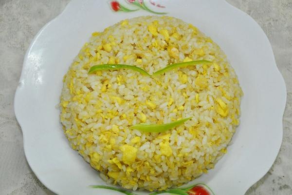 做法:雞蛋只取蛋黃,米飯刮松、小蔥洗凈后切成蔥花。蛋黃調入少許鹽打散,將米飯倒入蛋黃液中,浸泡,拌勻,包管每粒米上都沾上蛋黃液。熱鍋倒油,油溫升高后放入米飯,翻炒,炒至米粒疏松。出鍋前關火撒上蔥花即可。